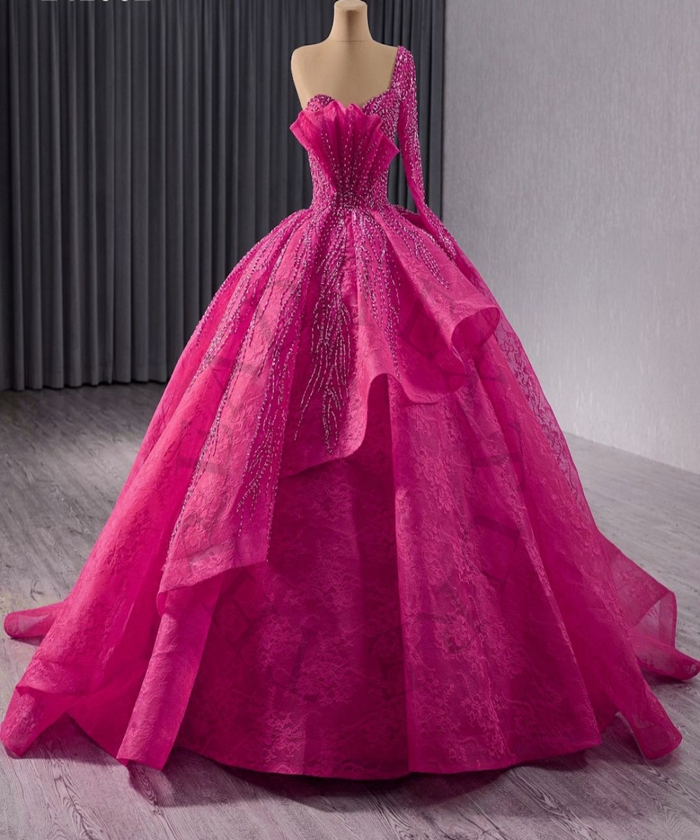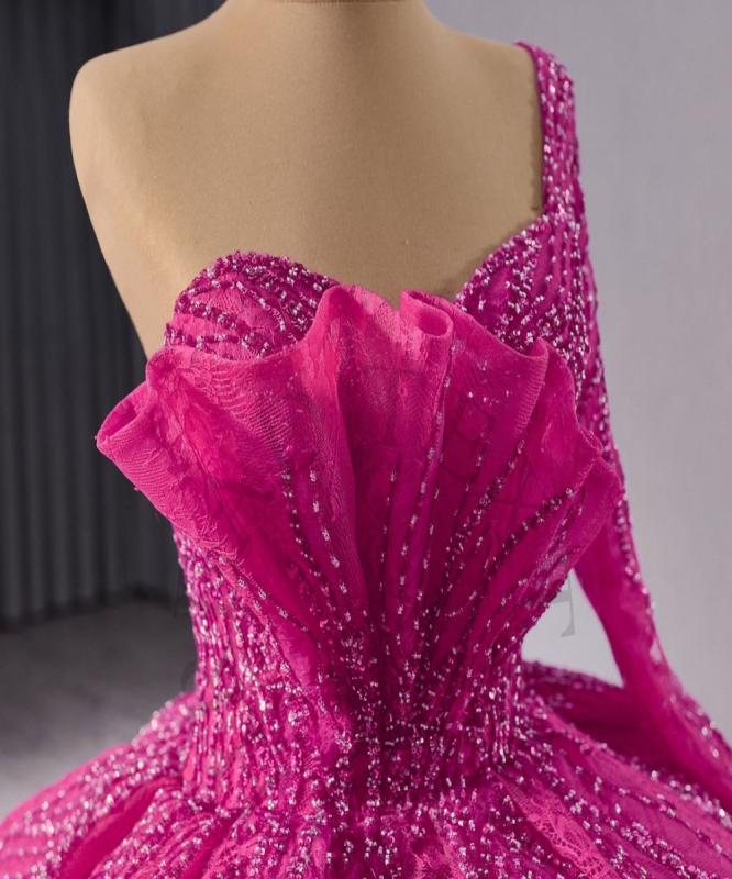 This Pink Luxurious Ball Gown Wedding Dress is crafted from a lightweight Silk-net fabric. Features a off-shoulder design and corset back for a stunningly romantic look. Perfect for any Prom / Birthday / Wedding Parties.