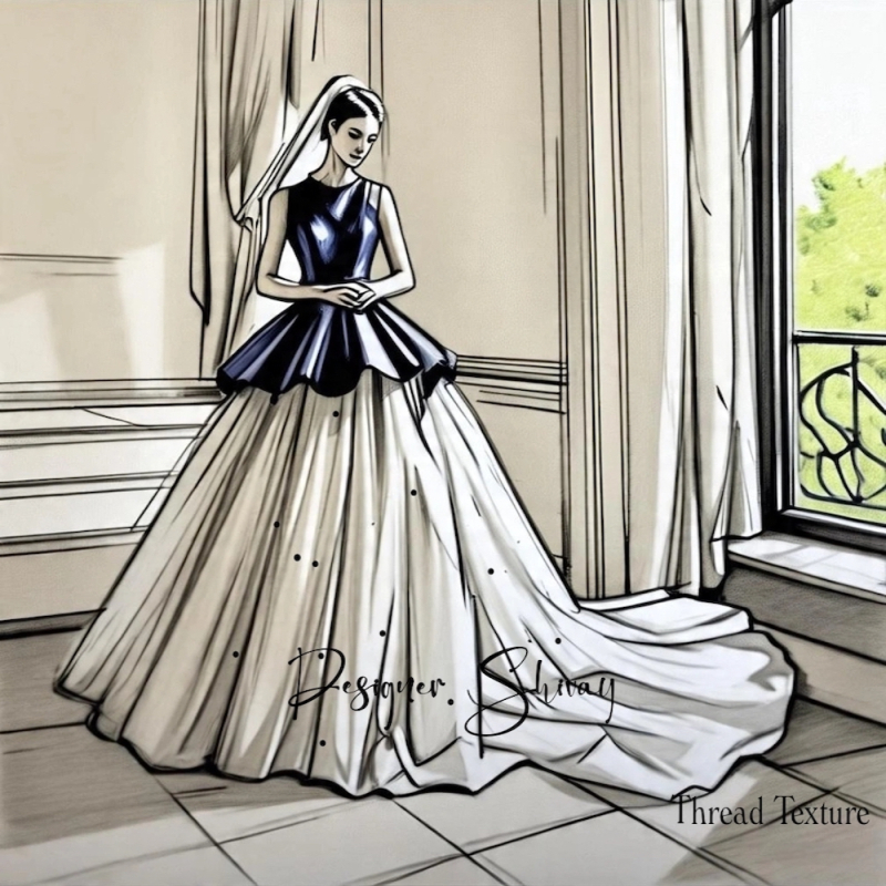 It is a white n purple off shoulder gown dress with train. Made with premium net and satin fabric. Dress is breathable, gentel to skin , adjustable tie corset and deep neckline.